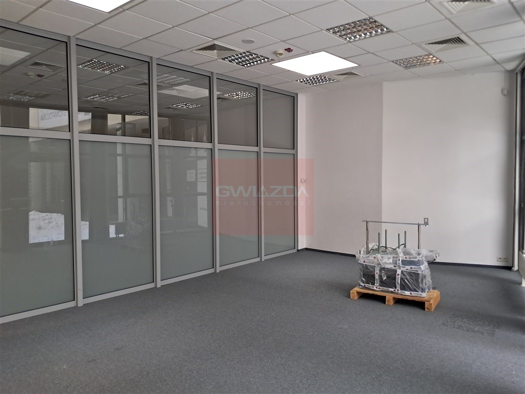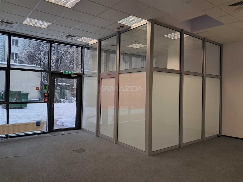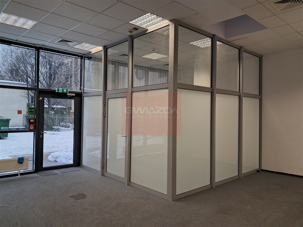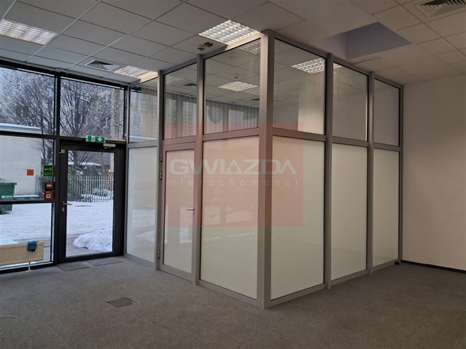 Obecny podział wykonany jest m.in ściankami g/k oraz przeszkleniami, jest możliwość otworzenia powierzchni.