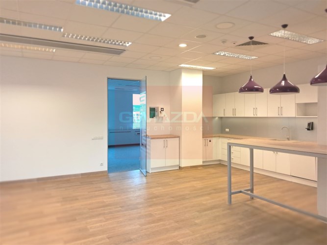 W standardzie podwieszane sufity, kontrola dostępu, klimatyzacja. W budynku znajduje się kantyna, dobre połączenie komunikacją miejską.