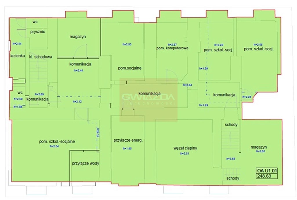 Powierzchnia budynku 1642 mkw., w tym piwnica, parter i cztery piętra.