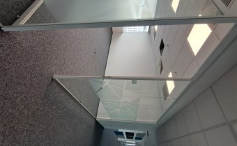 Obecny podział pomieszczeń jest widoczny na planie w tej ofercie, układ mieszany - otwarta przestrzeń oraz wydzielone przeszklone gabinety, sale konferencyjne oraz część socjalna i toalety.