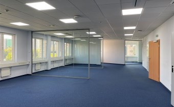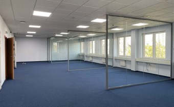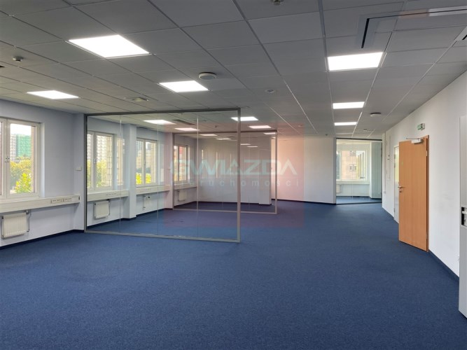Standard powierzchni biurowej: klimatyzacja, wykładzina, podwieszane sufity, ścianki działowe.