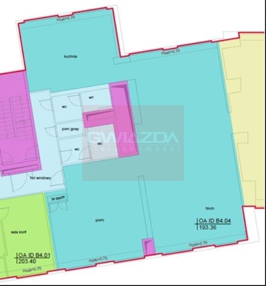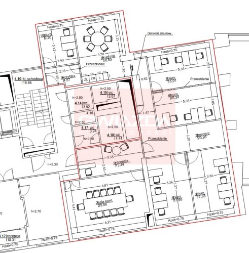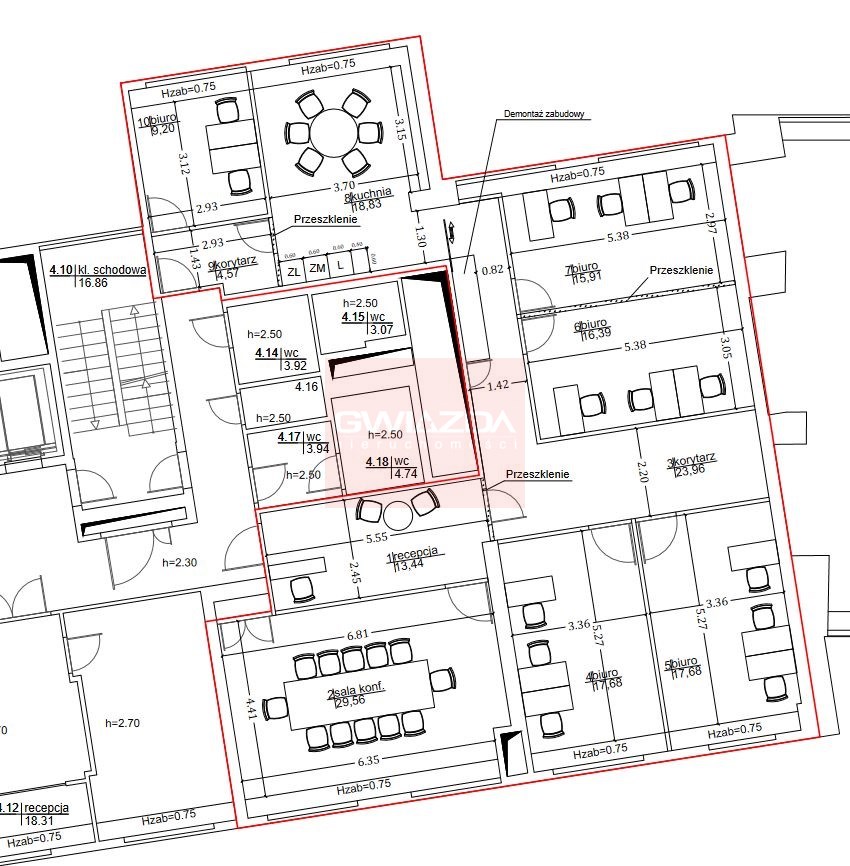 Do wynajęcia powierzchnia biurowa 224 mkw. netto (237 mkw. brutto) na czwartym piętrze.