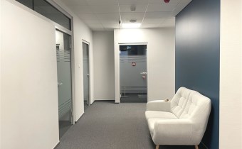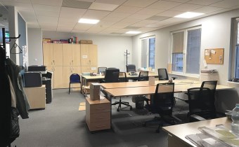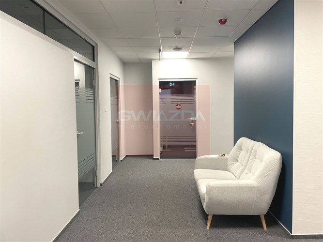 Standard powierzchni biurowej: klimatyzacja, wykładzina, podwieszane sufity, ścianki działowe.