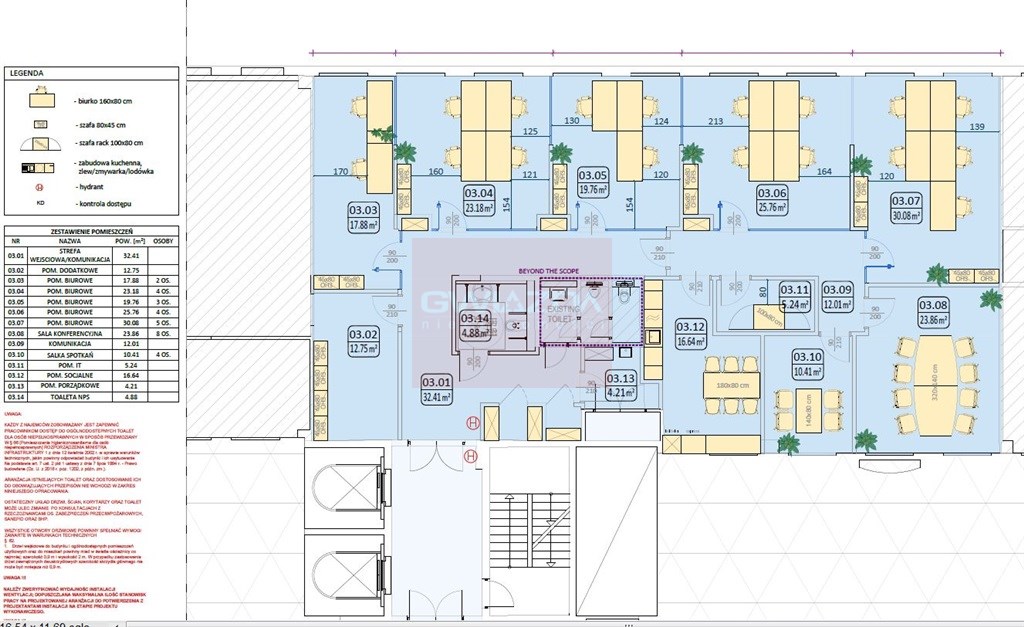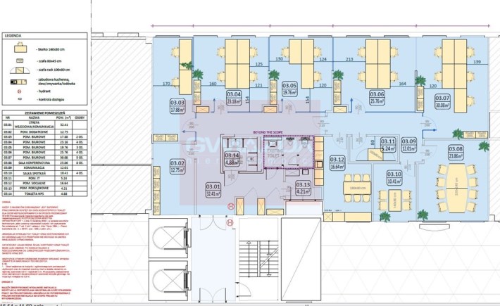 Do wynajęcia powierzchnia biurowa 290 mkw. brutto. na piętrze trzecim.