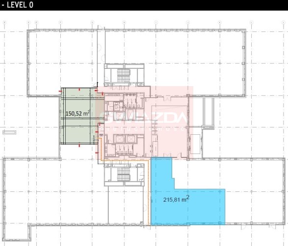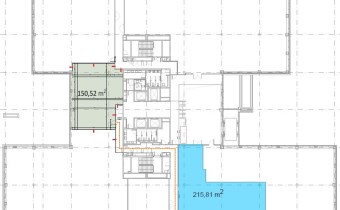 Składa się z dwóch modułów widocznych na palnie w tej ofercie. Są one wielkości 215 mkw. i 150 mkw. netto.