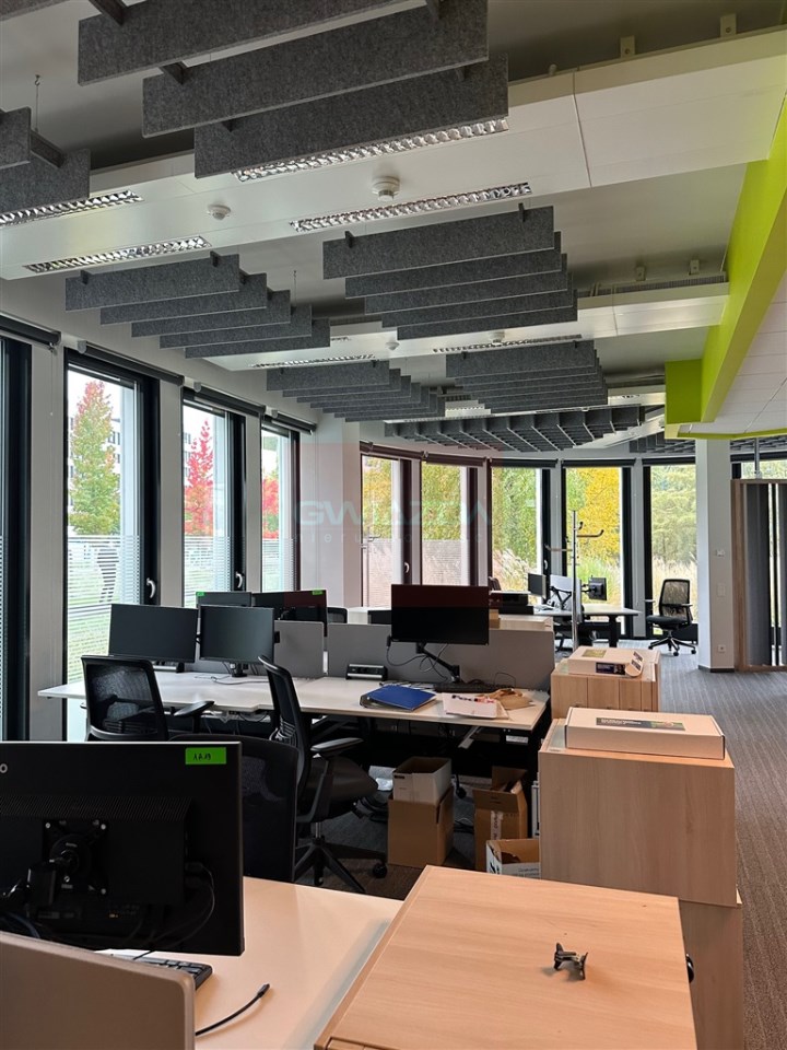 Standard powierzchni: belki chłodzące, oświetlenie w części biurowej, uchylne okna, drzwi wejściowe, grzejniki, podniesiona podłoga, wyposażenie toalet, kontrola dostępu, 24h ochrona, BMS.