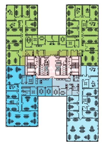 Powierzchnia typowego piętra od 2500 mkw. do 2700 mkw. Wysokość pomieszczeń to 3 m. od podniesionej podłogi do podwieszanego sufitu.