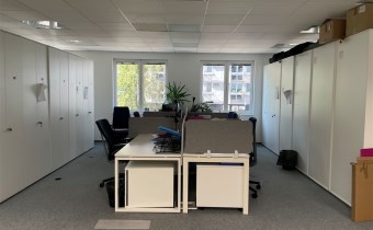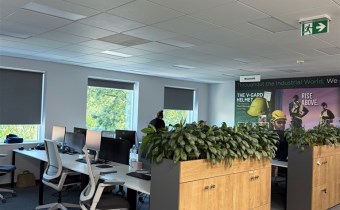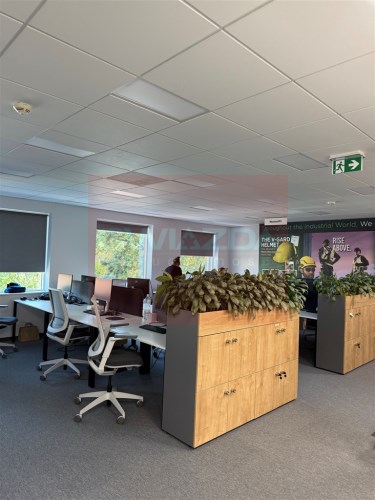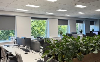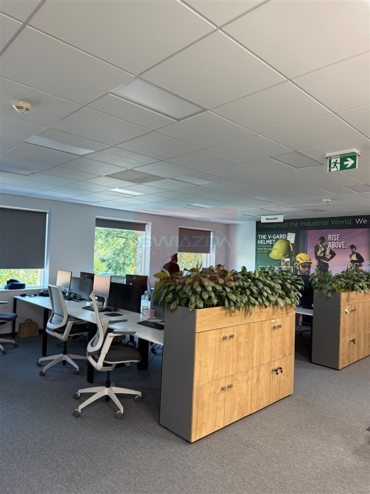 Standard powierzchni biurowej: klimatyzacja, wykładzina, podwieszane sufity, ścianki działowe.