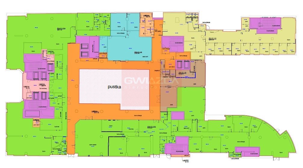 Koszt najmu 16 Euro/mkw. plus eksploatacja 28 zł/mkw., powierzchnia wspólna 6,68%.
