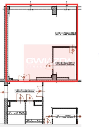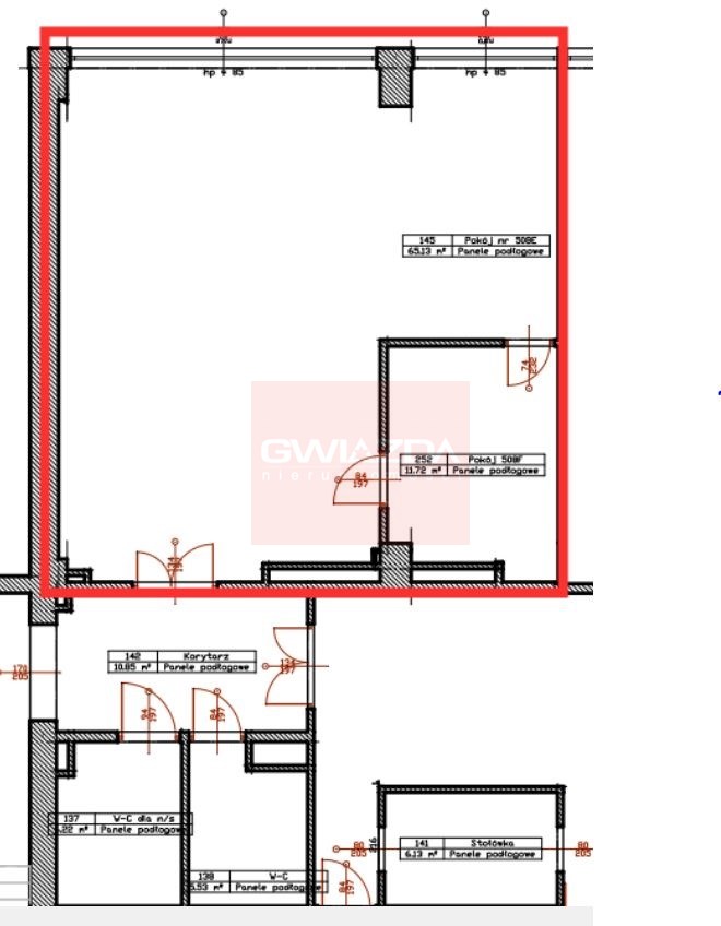 Oferowana powierzchnia znajduje się na piątym piętrze. Lokal składa się z dużego pomieszczenia oraz mniejszego gabinetu.