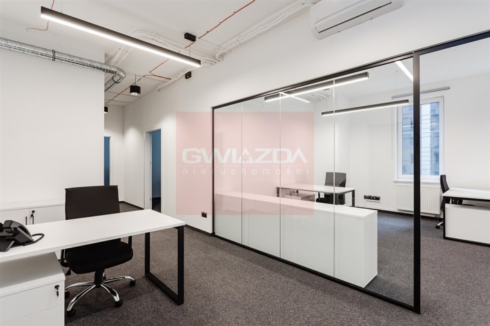 Biura mogą zostać wynajęte z meblami lub bez mebli.