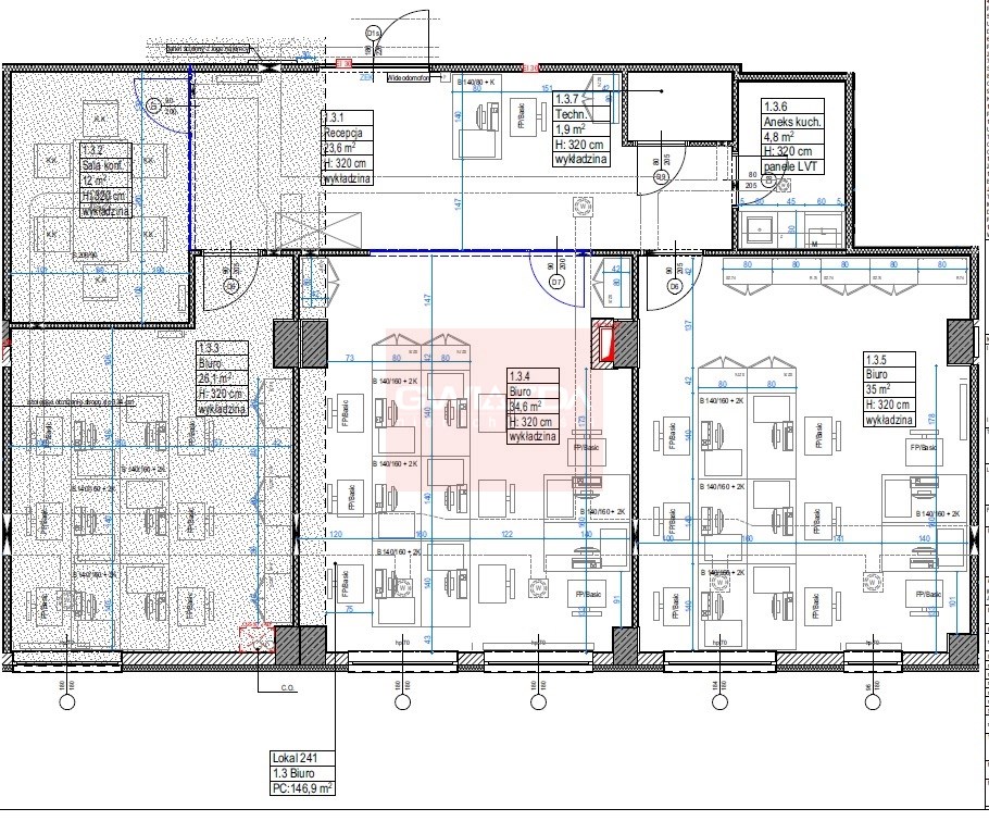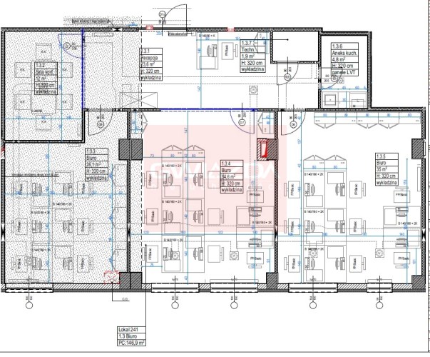 Powierzchnia obecnie posiada układ mieszany z możliwością dostosowania jej do potrzeb najemcy.